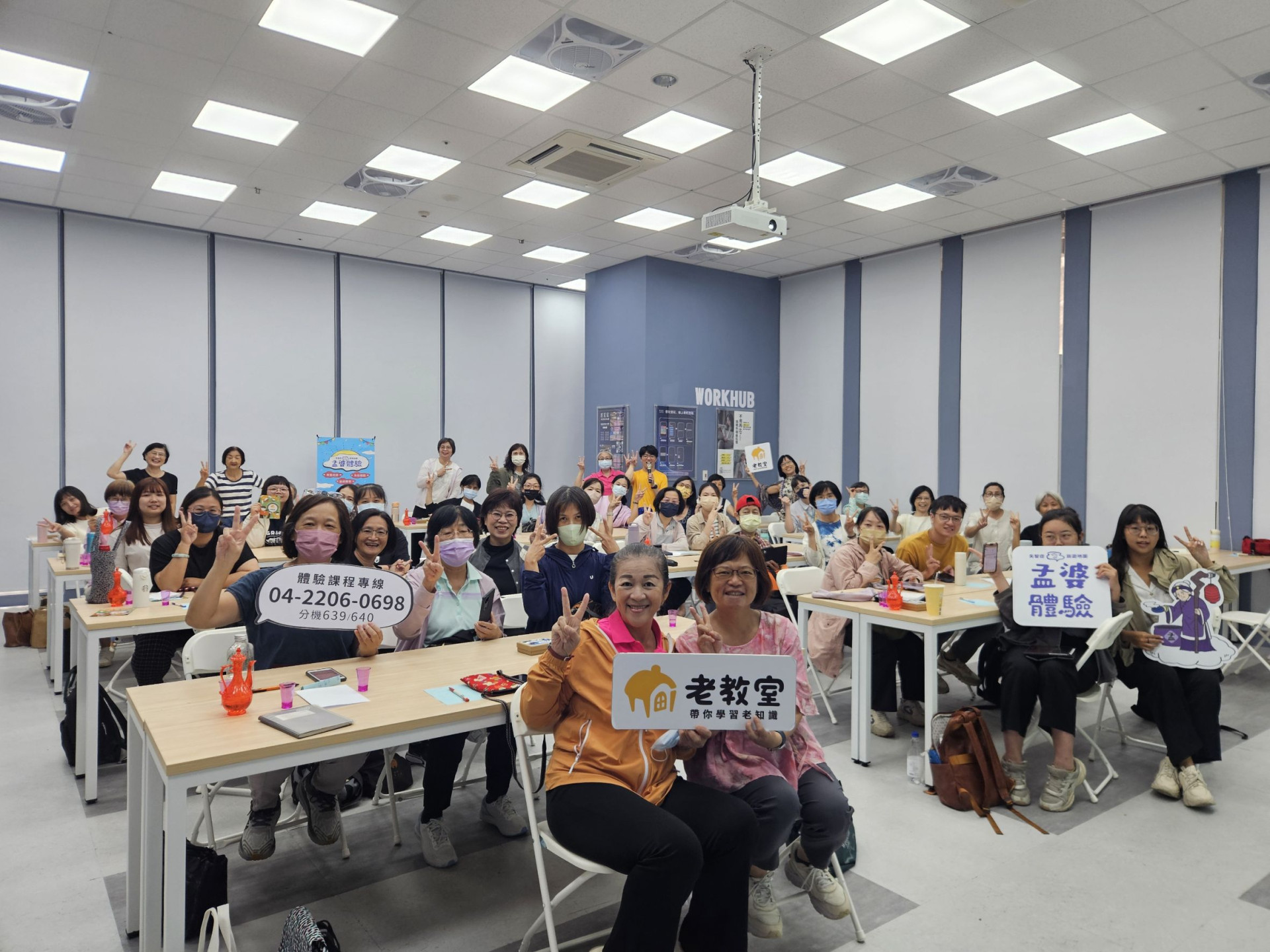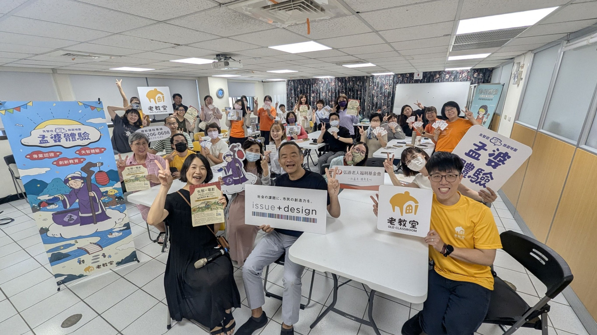 2025-10-17 全台首創!老教室引進日本教材推「孟婆體驗」 喝下孟婆湯,化身旅人走進失智世界!台中場圓滿落幕! 為翻轉社會大眾對失智的刻板印象,弘道老人福利基金會推廣老化教育的品牌「老教室」,繼「彭祖體驗」、「鐵拐體驗」後,再度推出「孟婆體驗」全新課程,並於17日首次在台中舉辦工作坊。這也是全國首度引進日本 issue+design 《失智症世界的旅行指南》教材並獲授權認證的課程,「老教室」團隊進一步結合台灣文化與教學特色,打造沉浸式的學習旅程。 2025-10-17 全台首創!老教室引進日本教材推「孟婆體驗」 喝下孟婆湯,化身旅人走進失智世界!高雄場圓滿落幕! 為翻轉社會大眾對失智的刻板印象,弘道老人福利基金會推廣老化教育的品牌「老教室」,繼「彭祖體驗」、「鐵拐體驗」後,再度推出「孟婆體驗」全新課程,並於16日首次在高雄舉辦工作坊。這也是全國首度引進日本 issue+design 《失智症世界的旅行指南》教材並獲授權認證的課程,「老教室」團隊進一步結合台灣文化與教學特色,打造沉浸式的學習旅程。 2025-10-17 全台首創!老教室引進日本教材推「孟婆體驗」 喝下孟婆湯,化身旅人走進失智世界!台北場圓滿落幕! 為翻轉社會大眾對失智的刻板印象,弘道老人福利基金會推廣老化教育的品牌「老教室」,繼「彭祖體驗」、「鐵拐體驗」後,再度推出「孟婆體驗」全新課程,並於15日首次在台北舉辦工作坊。這也是全國首度引進日本 issue+design 《失智症世界的旅行指南》教材並獲授權認證的課程,「老教室」團隊進一步結合台灣文化與教學特色,打造沉浸式的學習旅程。 2025-08-02 「老教室」攜手日本「issue+design」 引進《失智症世界的旅行指南》研發《孟婆體驗》推動失智友善社會 「老教室」為幫助社會大眾「建立對失智症正確認知」、「消除對失智症歧視」以及「鼓勵民眾對失智症更友善與包容」,攜手日本 issue+design,授權弘道基金會首家引進《失智症的世界旅行指南》中文版教材,並且融入台灣教學特色,打造更貼近台灣文化的沉浸式學習體驗,推出全新的失智體驗課程-「孟婆體驗」。 2024-07-25 全台首間「老教室」開學囉! 超另類兒童夏令營 帶小朋友走進老世界 「老教室」也特別選在暑假「開學」,第一檔活動推出最另類的兒童夏令營-「高齡友善小尖兵」,帶領國小學生從「化身老人」到「拜訪長輩」,進而「老幼合作」…等一連5天的活動,透過做中學的方式,幫助孩子更認識與理解長輩,並成為更具同理心的高齡友善小尖兵。 2024-07-24 因應高齡化弘道首度與國泰合作,將孝扎根喚起學生友善高齡意識 國泰人壽為了讓即將邁入職場的大學生體驗長者生活、了解台灣高齡化問題及推動青銀共融,與弘道老人福利基金會一起攜手辦理彭祖體驗,8/9-8/11於北中南三區各進行一場體驗活動,結合弘道本身的六大面向-【友善環境】和國泰的E.P.S戰略中的【Elder Friendly友善高齡】,設計一系列相關的體驗,藉由穿戴裝備模擬長輩生理老化,讓大學生體驗完後能更認識高齡長者並且建立友善高齡意識。 1 2