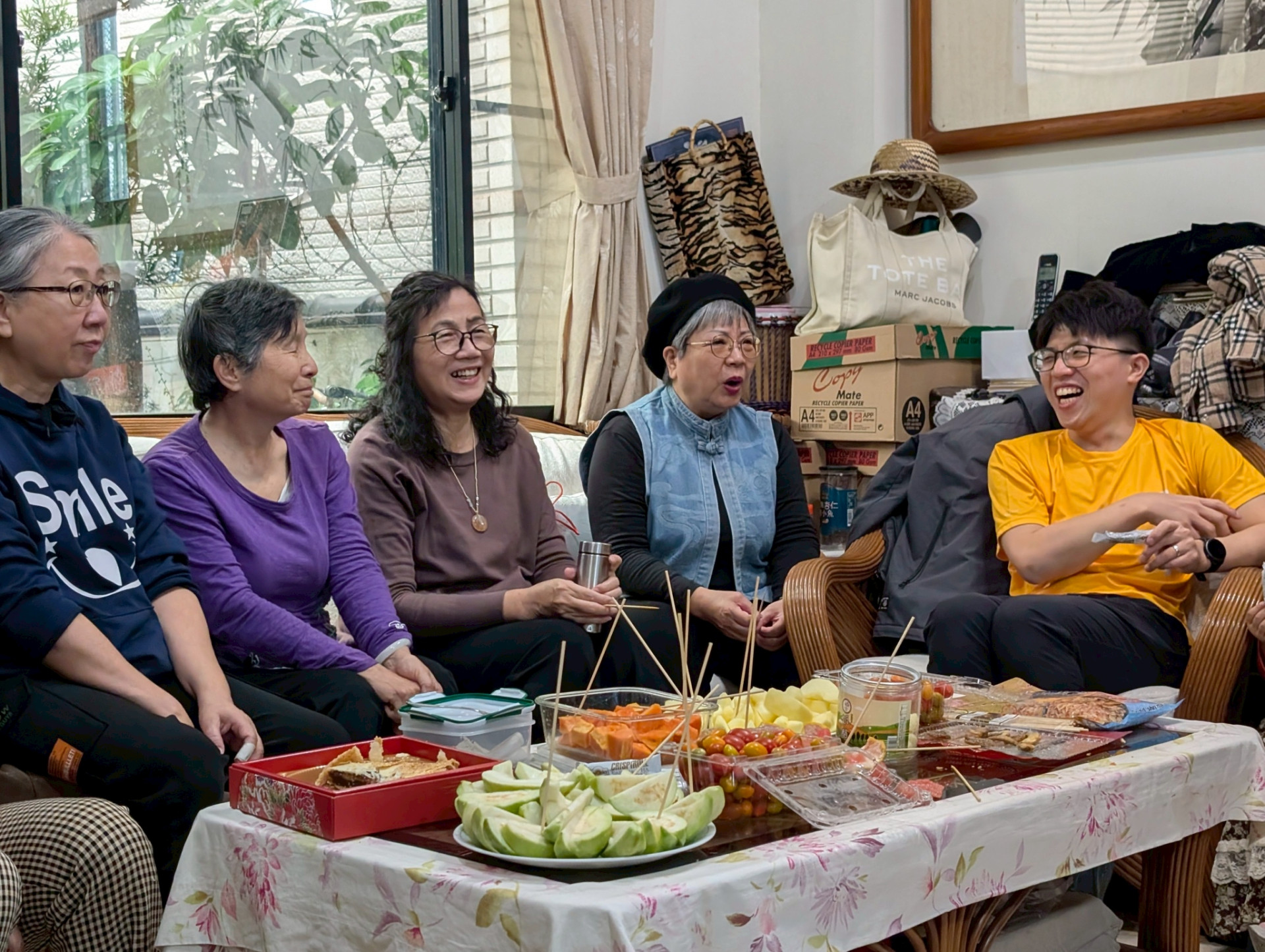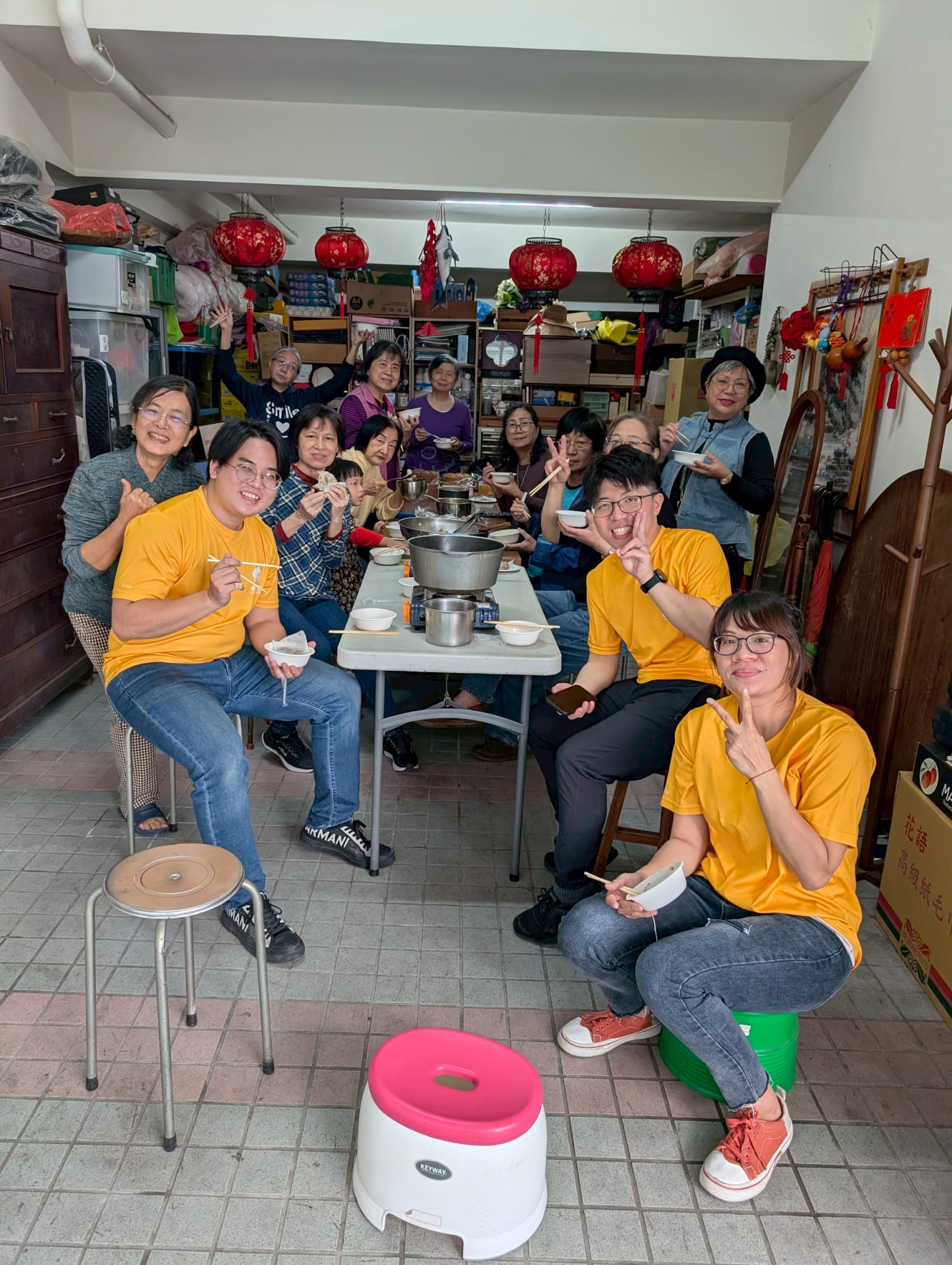 每年年底,老教室團隊總會留下一段時間,讓彼此慢下來,好好相聚。這不只是一場例行的聚會,更像是一段回望與充電的時刻,我們關心彼此的生活與身體,也分享這一年在高齡友善教育路上的收穫與心情。今年,我們來到淑貞姊的家,一起動手做午餐「芋粿」,在揉捏與蒸煮之間,將心意與溫度融入其中,也用這份手作的溫暖,表達對一路支持老教室的夥伴與單位的感謝,因為每一位都是我們的「芋(我)們的粿(貴)人」,讓這條路走得更穩、更遠。